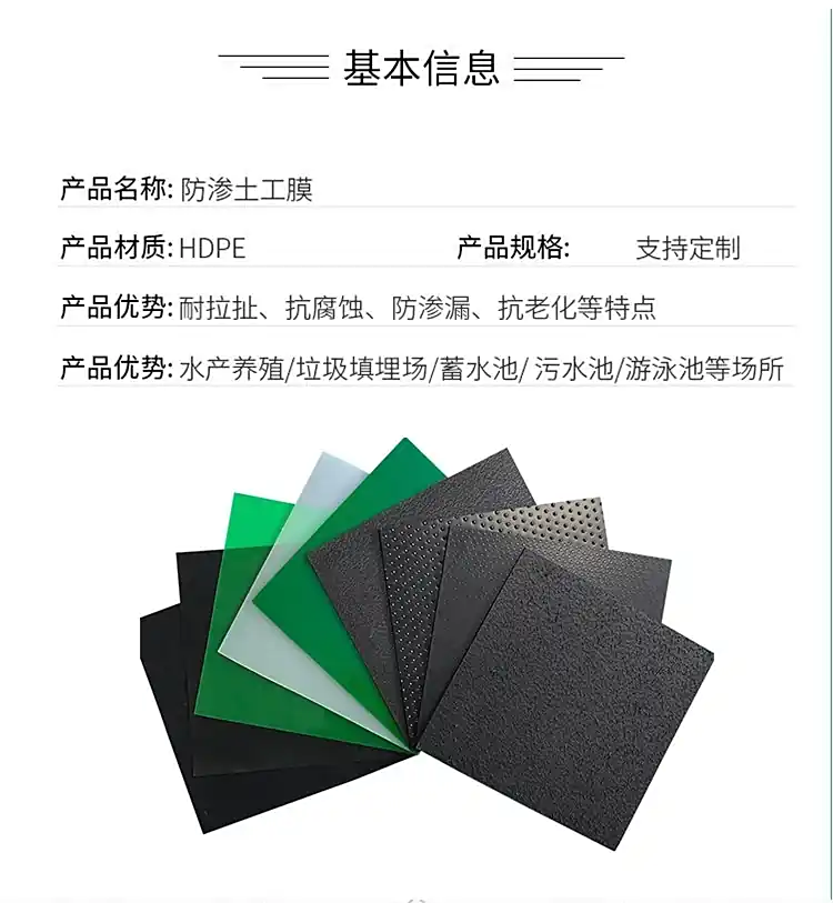 土工膜是一种以高分子聚合物为基本原料的防水阻隔型材料,主要通过塑料薄膜的不透水性来隔断漏水通道,常与无纺布复合使用以增强抗拉和抗穿刺能力 。该材料具备耐腐蚀、耐低温、适应变形能力强等特性,市面上供应 HDPE、LDPE、EVA 及复合土工膜等多种规格,广泛应用于水利、环保及市政防渗工程 。